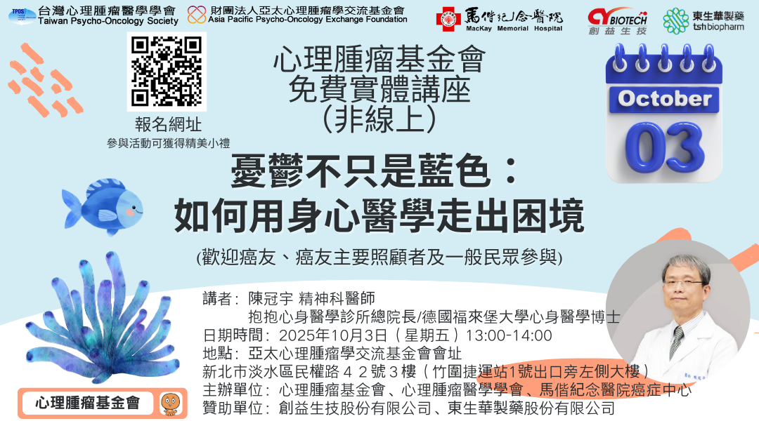 活動地點:亞太心理腫瘤學交流基金會 (新北市淡水區民權路42號3樓)